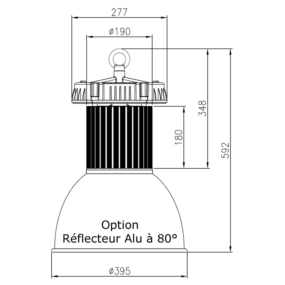 | AHL= Armature à Led Quartz Eco | 150= 150W | _= Alu | O30= OSRAM Duris S5 3030 | 40= IP40 | 7= >70 | 27= 2700°K | _= No Dim |
